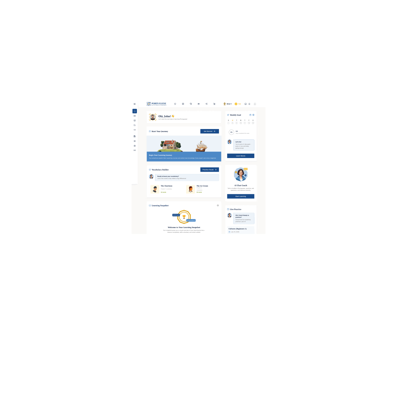 The program does not include one-on-one lessons. It is fully self-paced. However, our team will be there to support you through each step. Besides, as an extra, you can sign up for live practice Portuguese sessions with fellow students and a native speaker.