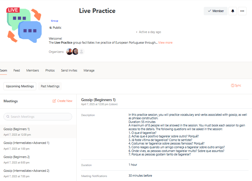As mentioned above, The Journey offers Live Practice Portuguese sessions as an add-on. You can supplement your learning with weekly lessons moderated by a native speaker. There are different sessions to separate beginners from intermediate and advanced learners. In them, you approach specific pre-set topics that change each week. Through these lessons, you can develop your skills and make new friends.